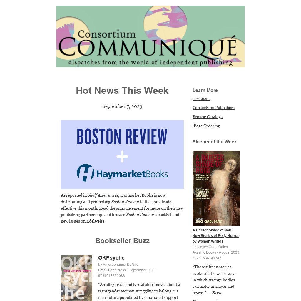 In other fall book news, Kirkus and Publishers Weekly recommend numerous Consortium titles for the season ahead . . .