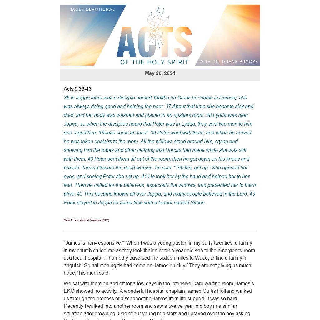 "James is non-responsive.” When I was a young pastor, in my early twenties, a family in my church called me as they took their nineteen-year-old son to the emergency room at a local hospital. I hurriedly traversed the sixteen miles to Waco, to find a family in anguish. Spinal meningitis had come on James quickly. “They are not giving us much hope,” his mom said.