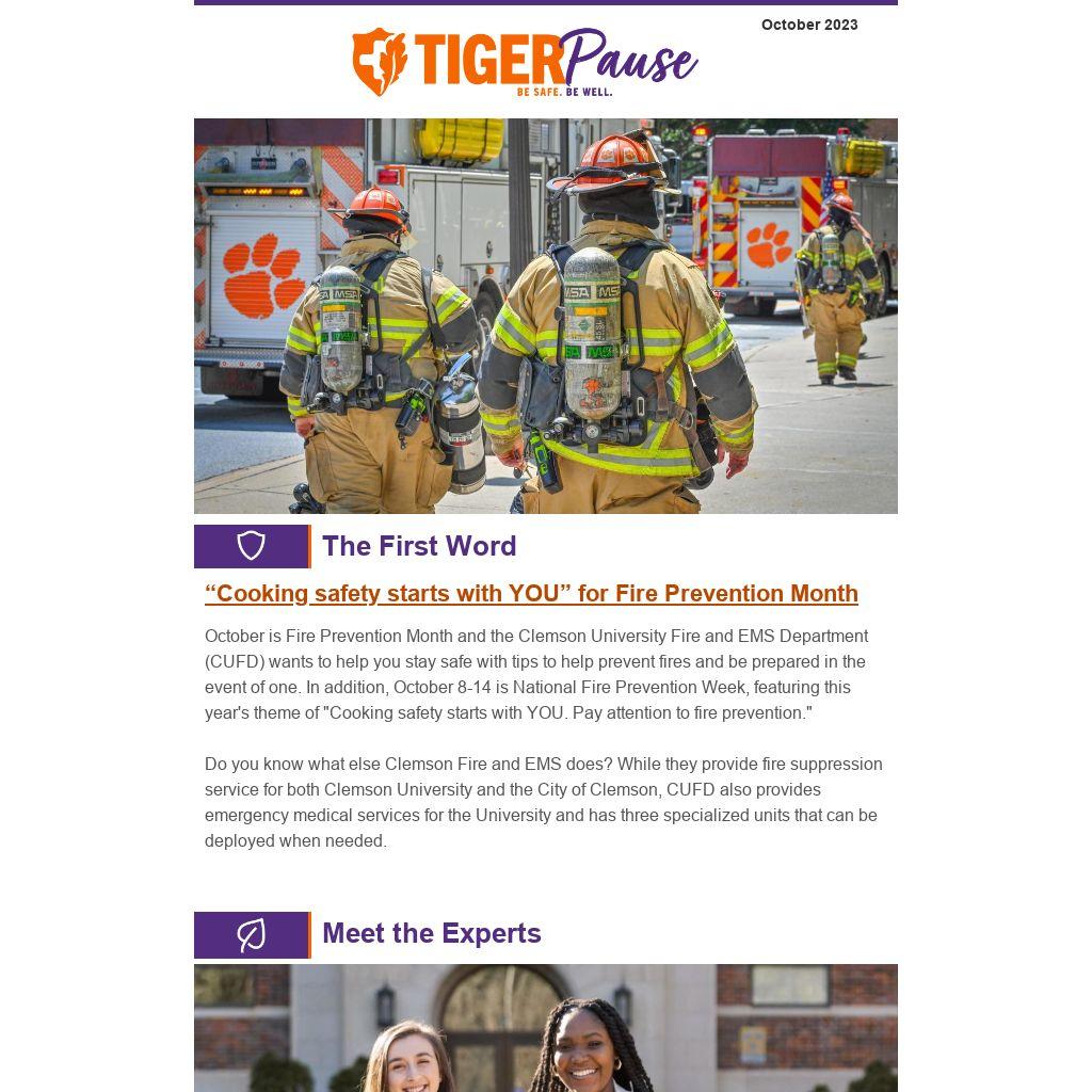 October is Fire Prevention Month and the Clemson University Fire and EMS Department (CUFD) wants to help you stay safe with tips to help prevent fires and be prepared in the event of one. In addition, October 8-14 is National Fire Prevention Week, featuring this year's theme of "Cooking safety starts with YOU. Pay attention to fire prevention."