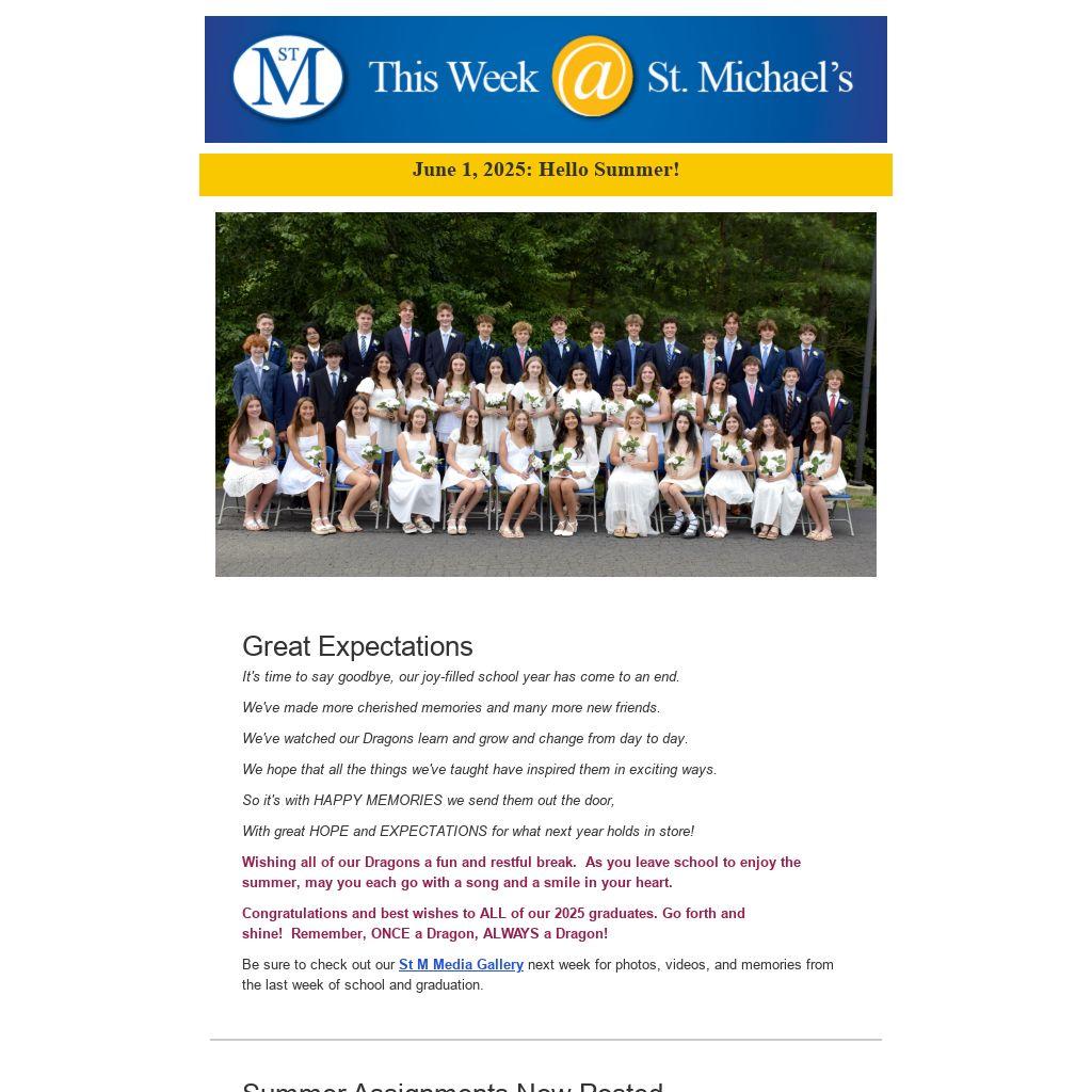 Be sure to check out our St M Media Gallery next week for photos, videos, and memories from the last week of school and graduation.