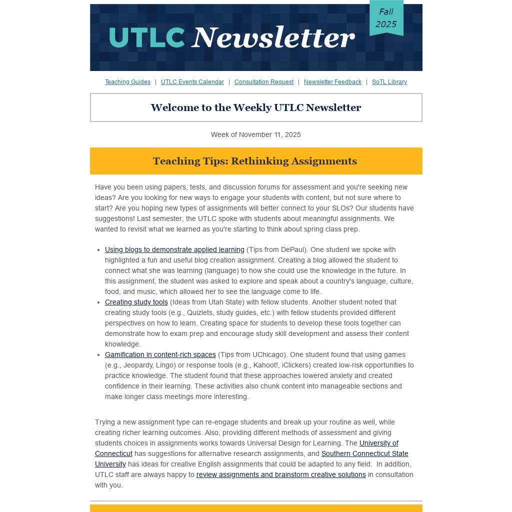 Welcome to the Weekly UTLC Newsletter |
