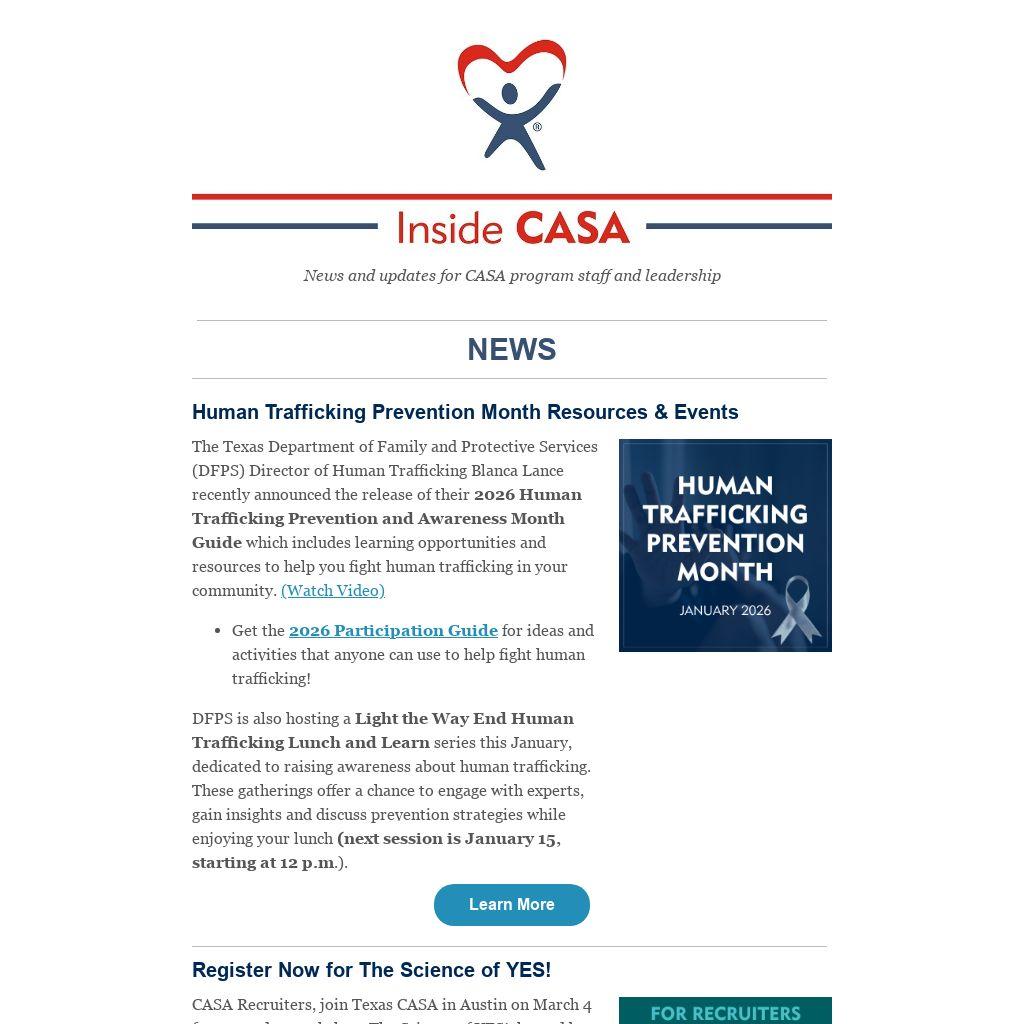 News and updates for CASA program staff and leadership