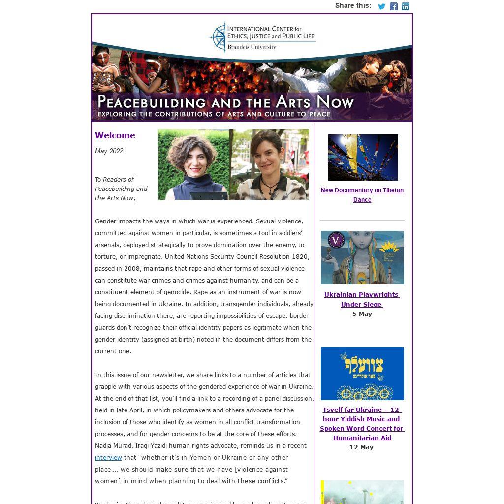 To Readers of Peacebuilding and the Arts Now,