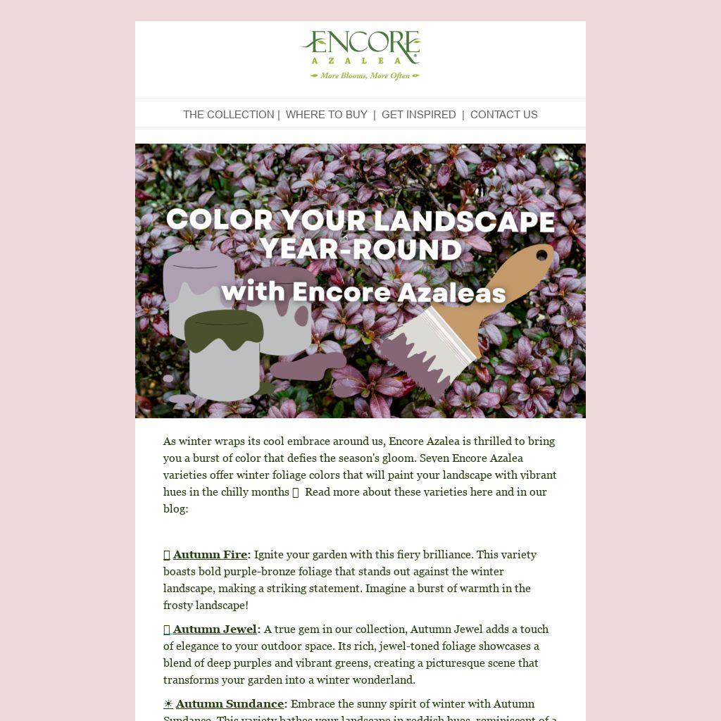As winter wraps its cool embrace around us, Encore Azalea is thrilled to bring you a burst of color that defies the season's gloom. Seven Encore Azalea varieties offer winter foliage colors that will paint your landscape with vibrant hues in the chilly months 🎨 Read more about these varieties here and in our blog: