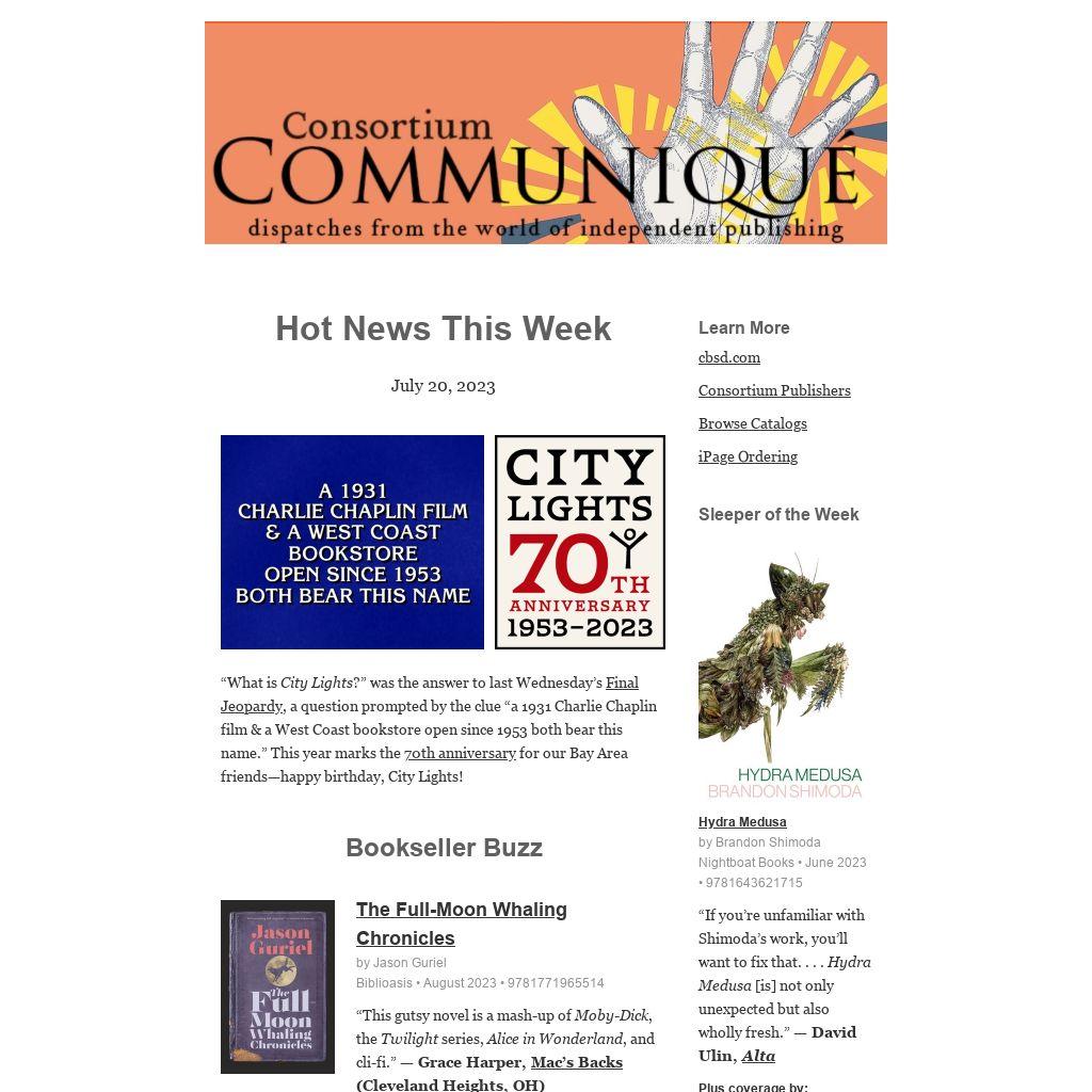 “What is City Lights?” was the answer to last Wednesday’s Final Jeopardy, a question prompted by the clue “a 1931 Charlie Chaplin film & a West Coast bookstore open since 1953 both bear this name.” This year marks the 70th anniversary for our Bay Area friends—happy birthday, City Lights!