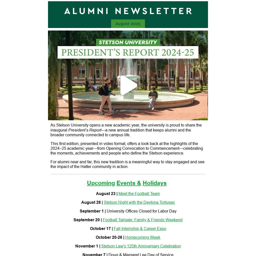 This first edition, presented in video format, offers a look back at the highlights of the 2024–25 academic year—from Opening Convocation to Commencement—celebrating the moments, achievements and people who define the Stetson experience.