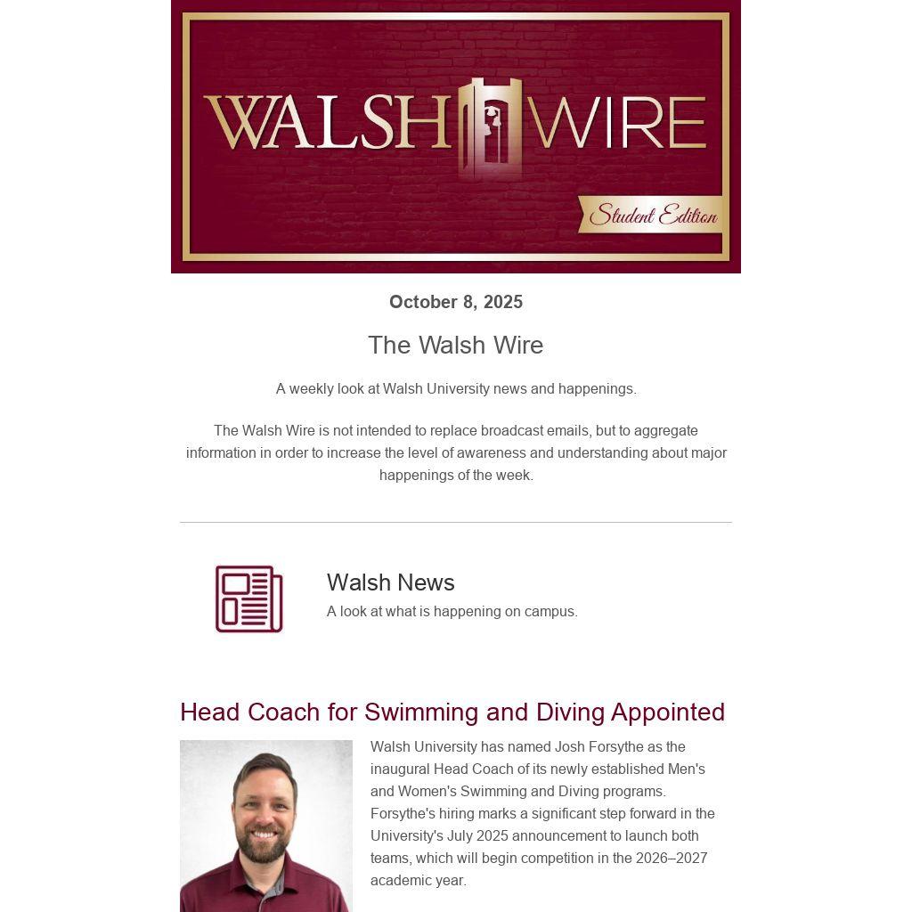 A weekly look at Walsh University news and happenings.