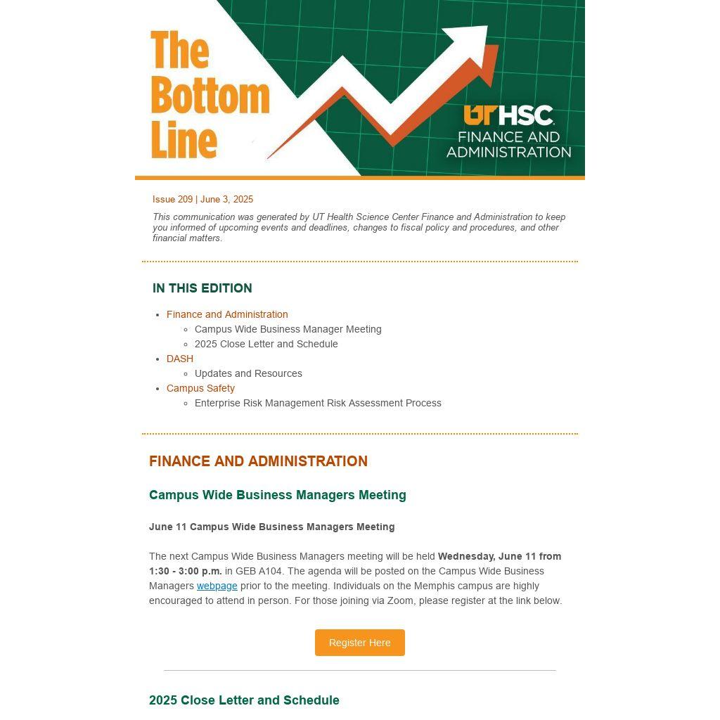 This communication was generated by UT Health Science Center Finance and Administration to keep you informed of upcoming events and deadlines, changes to fiscal policy and procedures, and other financial matters.