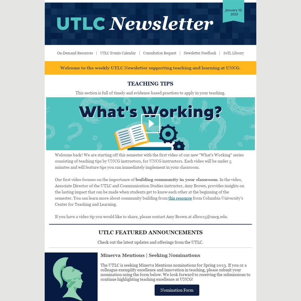 Welcome to the weekly UTLC Newsletter supporting teaching and learning at UNCG.