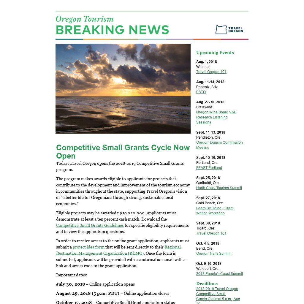 Today, Travel Oregon opens the 2018-2019 Competitive Small Grants program.