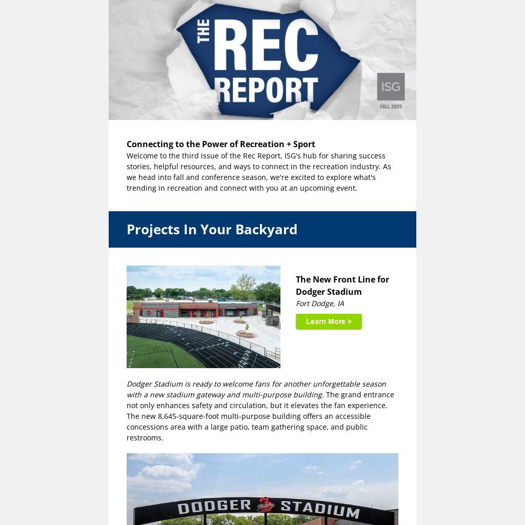 Welcome to the third issue of the Rec Report, ISG's hub for sharing success stories, helpful resources, and ways to connect in the recreation industry. As we head into fall and conference season, we're excited to explore what's trending in recreation and connect with you at an upcoming event.