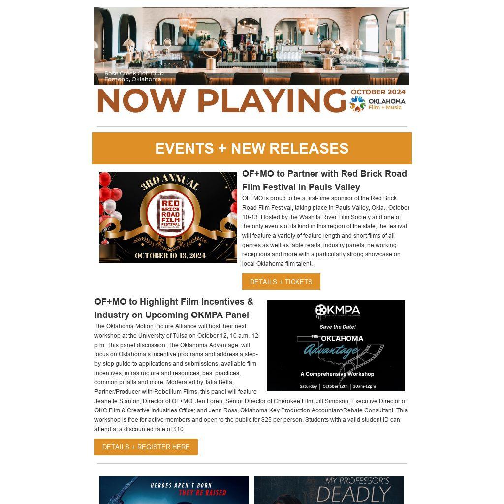 OF+MO to Partner with Red Brick Road Film Festival in Pauls Valley OF+MO is proud to be a first-time sponsor of the Red Brick Road Film Festival, taking place in Pauls Valley, Okla., October 10-13. Hosted by the Washita River Film Society and one of the only events of its kind in this region of the state, the festival will feature a variety of feature length and short films of all genres as well as table reads, industry panels, networking receptions and more with a particularly strong showcase on local Oklahoma film talent.