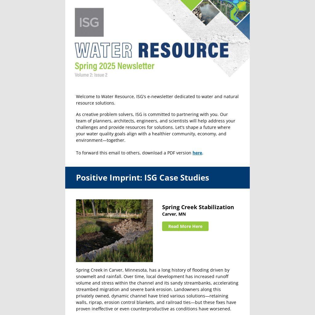 Welcome to Water Resource, ISG's e-newsletter dedicated to water and natural resource solutions.