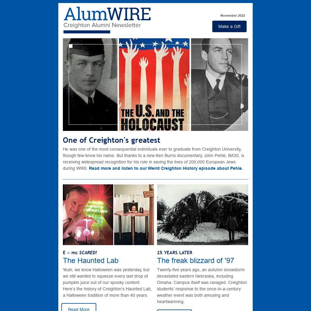 He was one of the most consequential individuals ever to graduate from Creighton University, though few know his name. But thanks to a new Ken Burns documentary, John Pehle, BA’30, is receiving widespread recognition for his role in saving the lives of 200,000 European Jews during WWII. Read more and listen to our Weird Creighton History episode about Pehle.