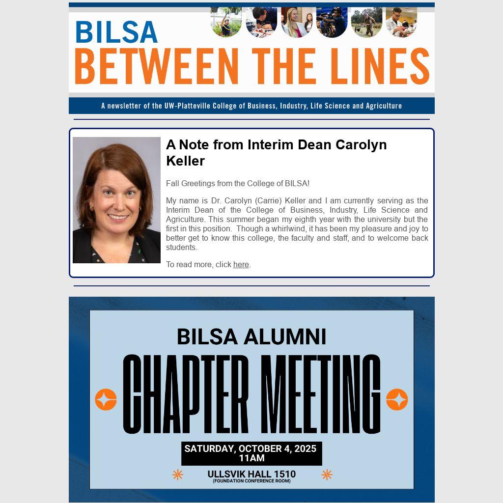 Thank you once again for golfing, sponsoring, and sharing your enthusiasm for UW–Platteville and the College of BILSA. We look forward to welcoming you back to the course next year for another successful outing on Friday, August 14, 2026. Save the Date!