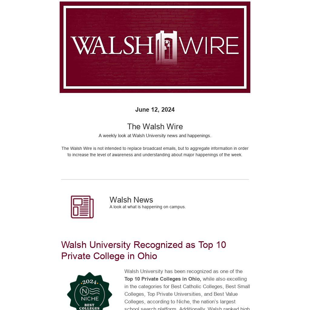 The Walsh Wire is not intended to replace broadcast emails, but to aggregate information in order to increase the level of awareness and understanding about major happenings of the week.