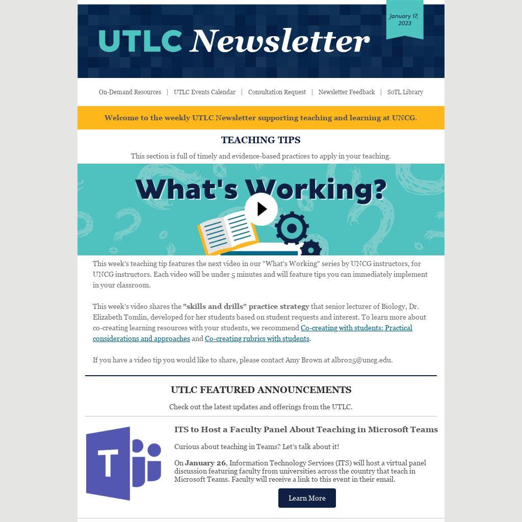 Welcome to the weekly UTLC Newsletter supporting teaching and learning at UNCG.