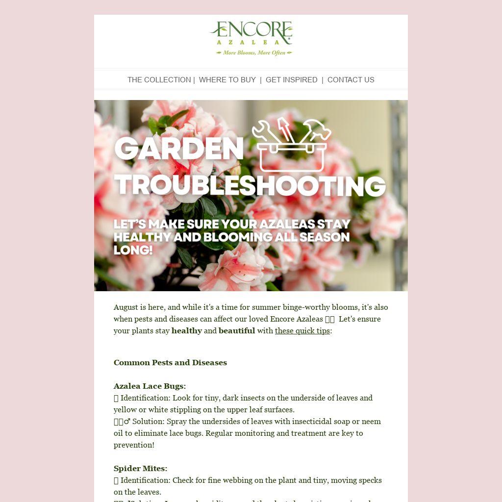 August is here, and while it's a time for summer binge-worthy blooms, it's also when pests and diseases can affect our loved Encore Azaleas 🫶🏼 Let's ensure your plants stay healthy and beautiful with these quick tips: