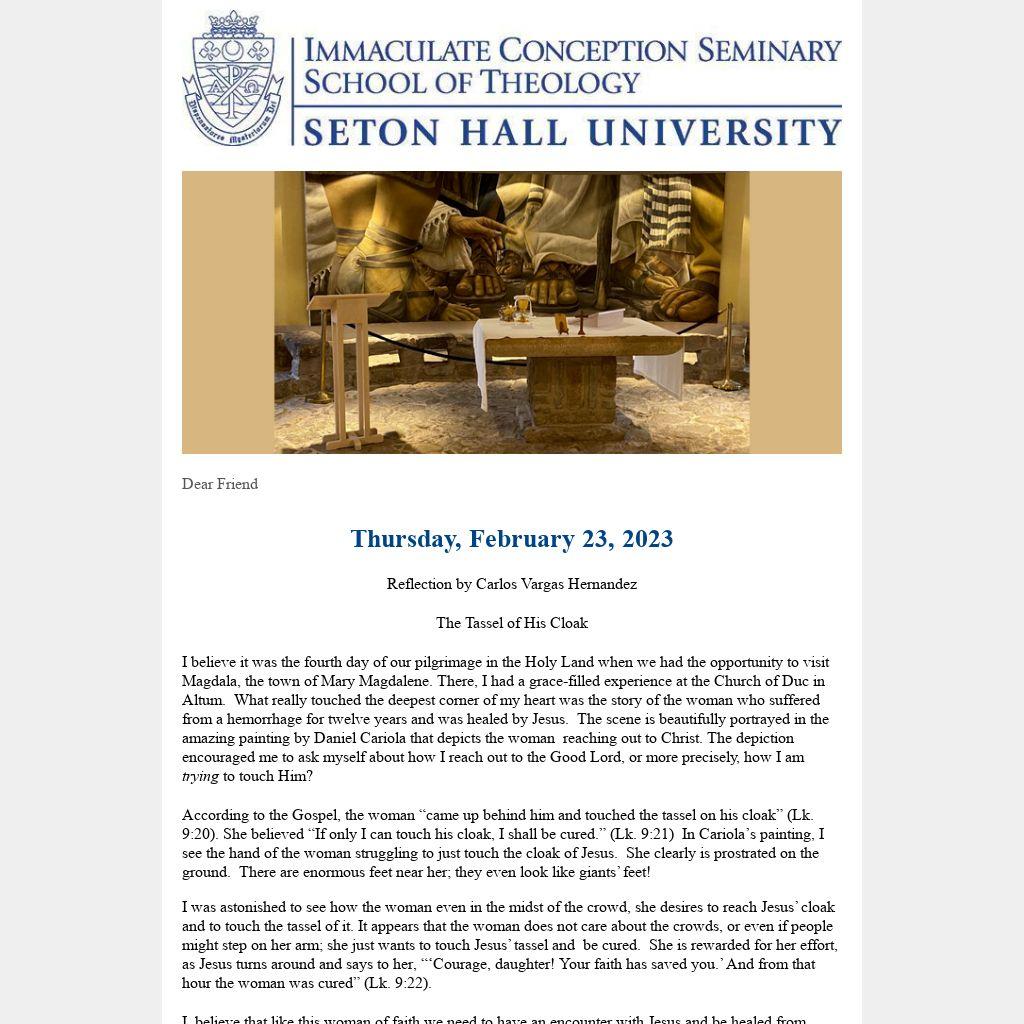 I was astonished to see how the woman even in the midst of the crowd, she desires to reach Jesus’ cloak and to touch the tassel of it. It appears that the woman does not care about the crowds, or even if people might step on her arm; she just wants to touch Jesus’ tassel and be cured. She is rewarded for her effort, as Jesus turns around and says to her, “‘Courage, daughter! Your faith has saved you.’ And from that hour the woman was cured” (Lk. 9:22).