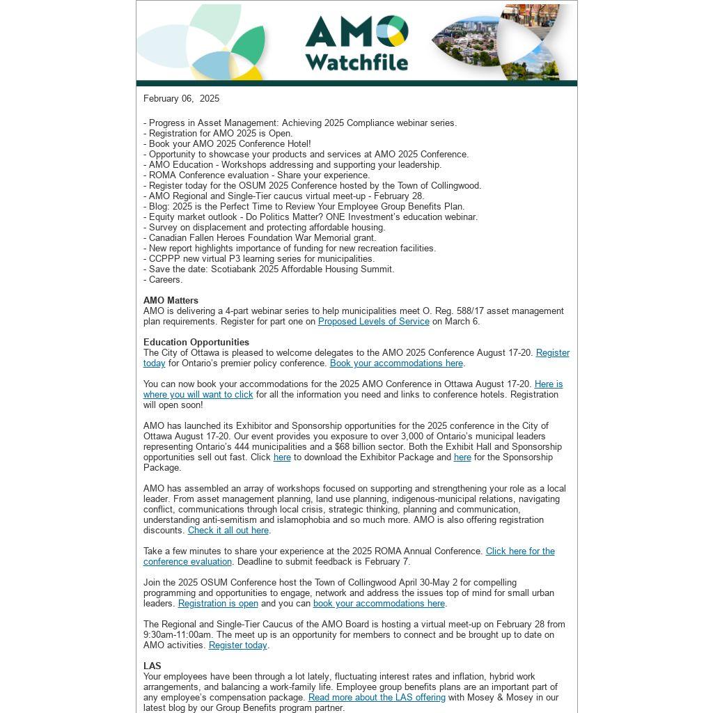 *Disclaimer: The Association of Municipalities of Ontario (AMO) is unable to provide any warranty regarding the accuracy or completeness of third-party submissions. Distribution of these items does not imply an endorsement of the views, information or services mentioned.