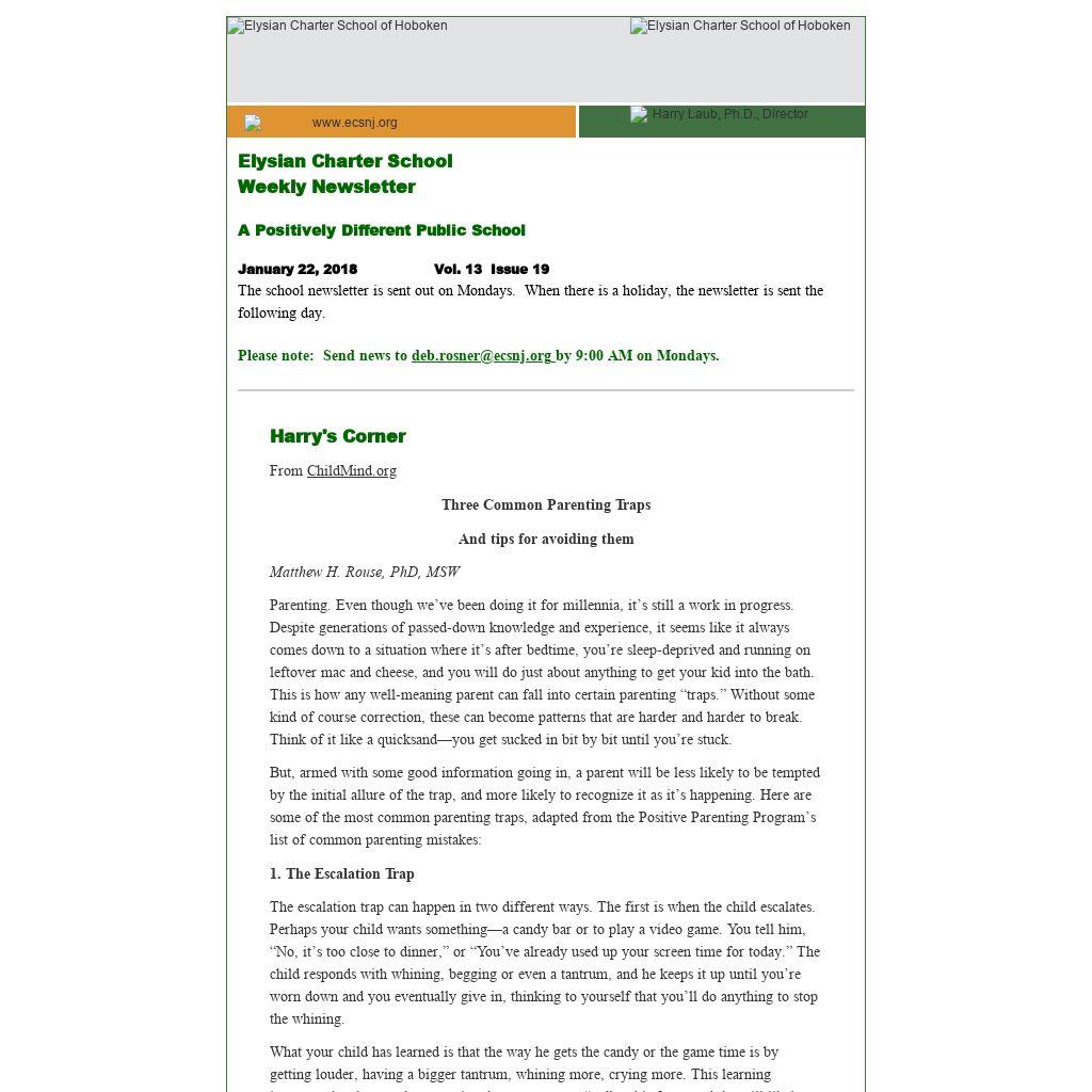 The school newsletter is sent out on Mondays. When there is a holiday, the newsletter is sent the following day.