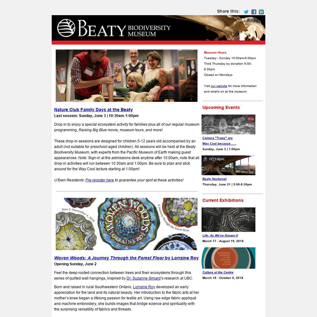 The Beaty Biodiversity Museum is Vancouver's natural history museum, dedicated to building greater understanding, and a shared sense of community and wonder, around biodiversity.