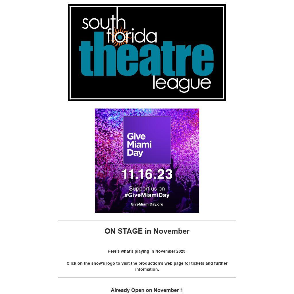 This email blast and other programs of the South Florida Theatre League are made possible with the support of Miami-Dade County Department of Cultural Affairs and the Cultural Affairs Council, the Miami-Dade County Mayor and Board of County Commissioners.