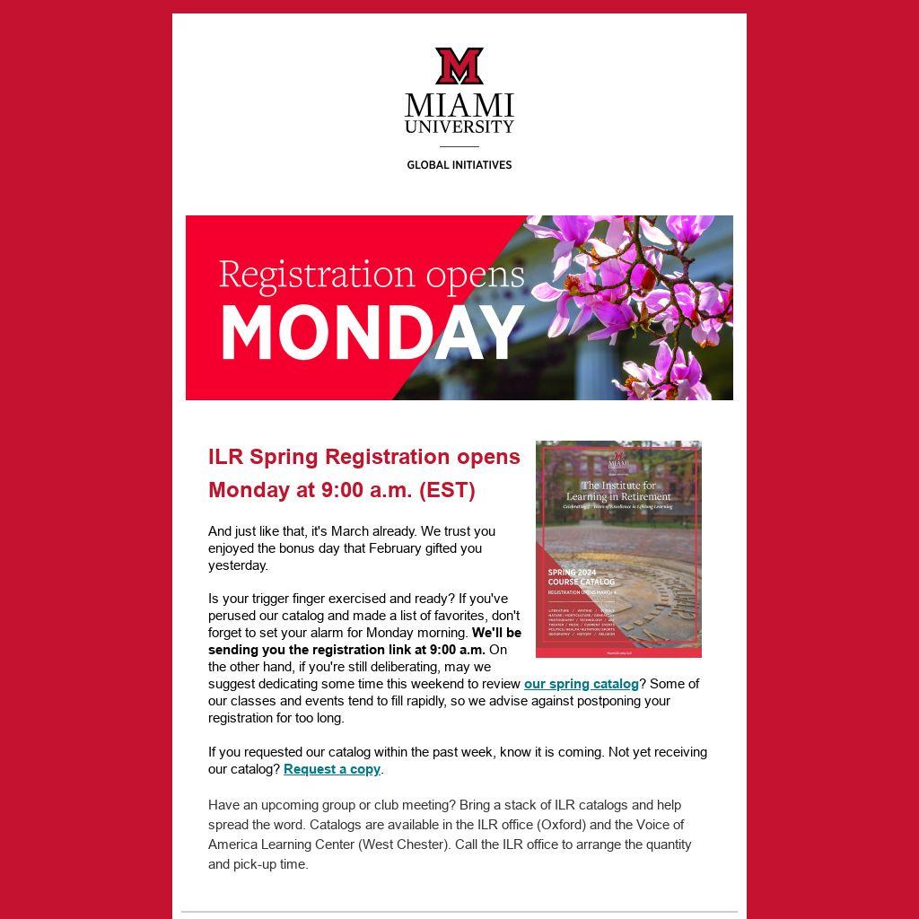 ILR Spring Registration opens Monday at 9:00 a.m. (EST)