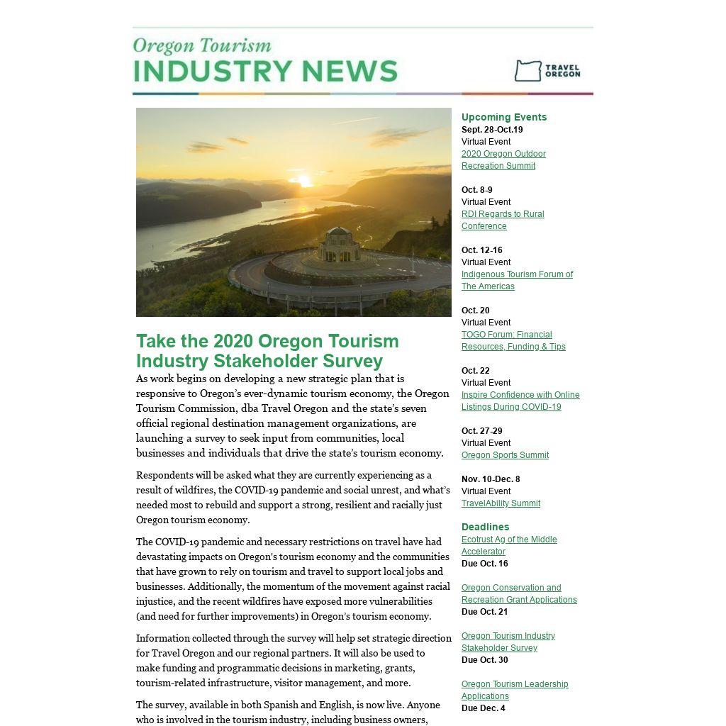 Take the 2020 Oregon Tourism Industry Stakeholder Survey