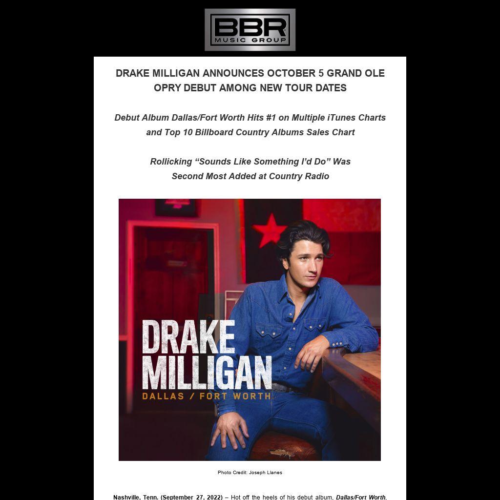 The news arrives just as Milligan’s debut album smashed expectations on its September 15 arrival, with Dallas/Fort Worth hitting #1 on not just the iTunes Country Album Chart, but the ALL-GENRE iTunes Album Chart, as well as landing in the Top 10 on Billboard's Country Albums Sales Chart.