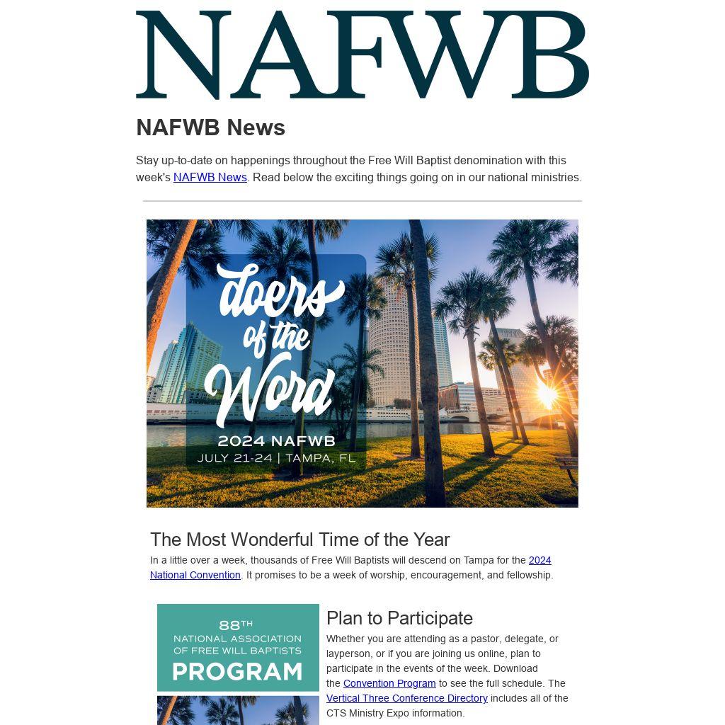 The convention is a great week to catch up with old friends and meet new ones, get renewed and refreshed for our ministry, and get encouraged about what God is doing among us. Enjoy your time in Tampa as we endeavor together to be "Doers of the Word."