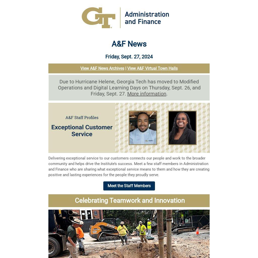 Due to Hurricane Helene, Georgia Tech has moved to Modified Operations and Digital Learning Days on Thursday, Sept. 26, and Friday, Sept. 27. .