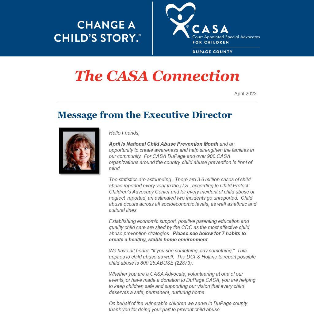April is National Child Abuse Prevention Month and an opportunity to create awareness and help strengthen the families in our community. For CASA DuPage and over 900 CASA organizations around the country, child abuse prevention is front of mind.