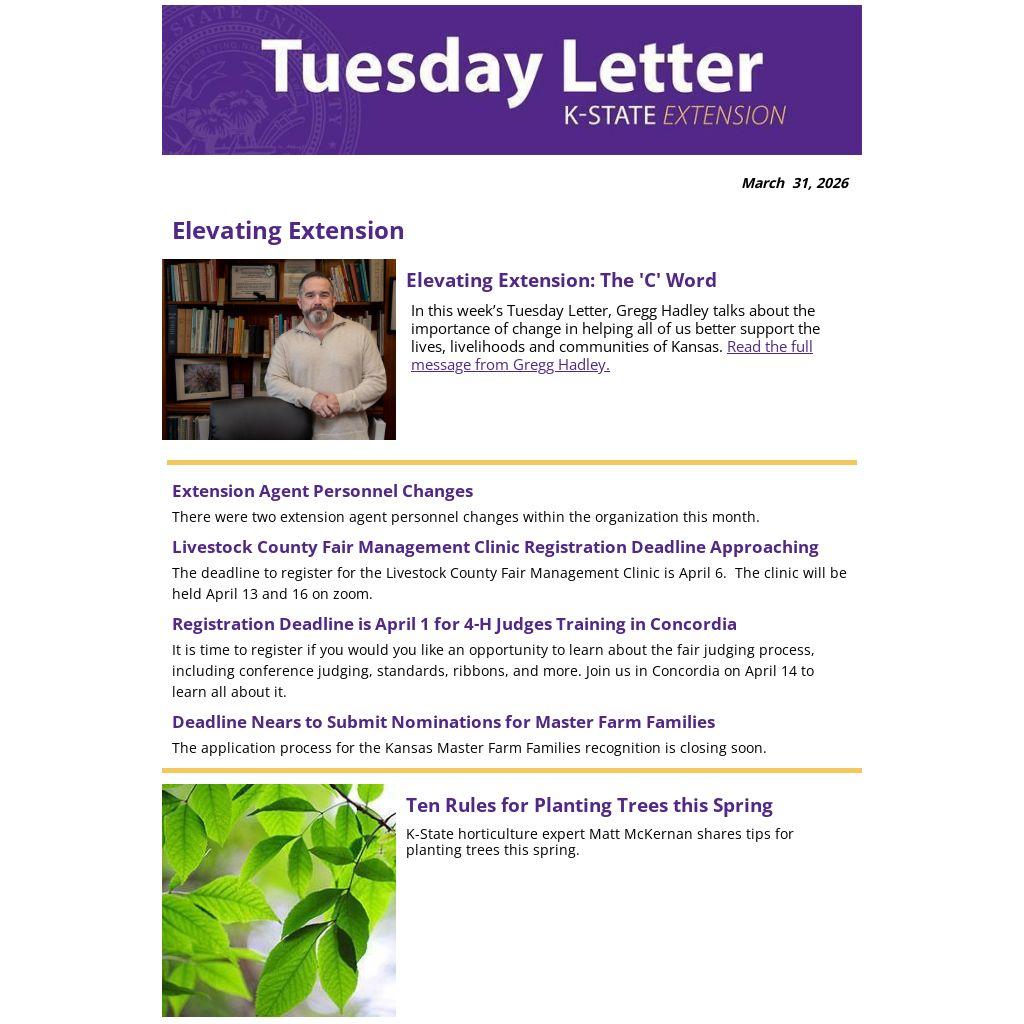 In this week’s Tuesday Letter, Gregg Hadley talks about the importance of change in helping all of us better support the lives, livelihoods and communities of Kansas. Read the full message from Gregg Hadley.