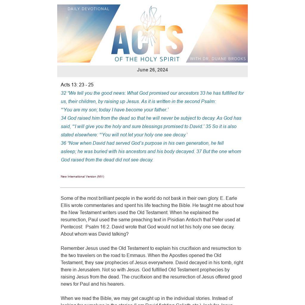 Some of the most brilliant people in the world do not bask in their own glory. E. Earle Ellis wrote commentaries and spent his life teaching the Bible. He taught me about how the New Testament writers used the Old Testament. When he explained the resurrection, Paul used the same preaching text in Pisidian Antioch that Peter used at Pentecost: Psalm 16:2. David wrote that God would not let his holy one see decay. About whom was David talking?
