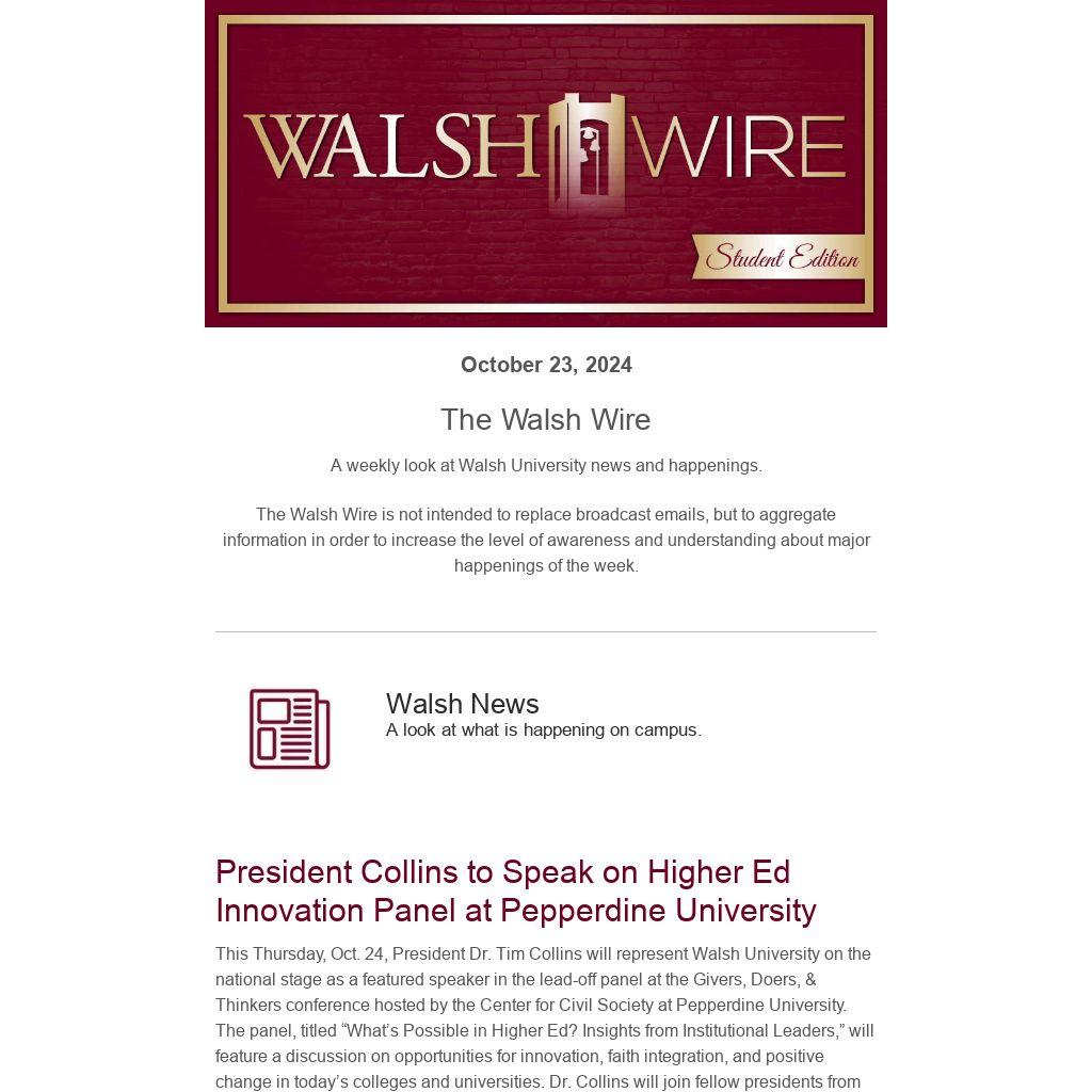 A weekly look at Walsh University news and happenings.