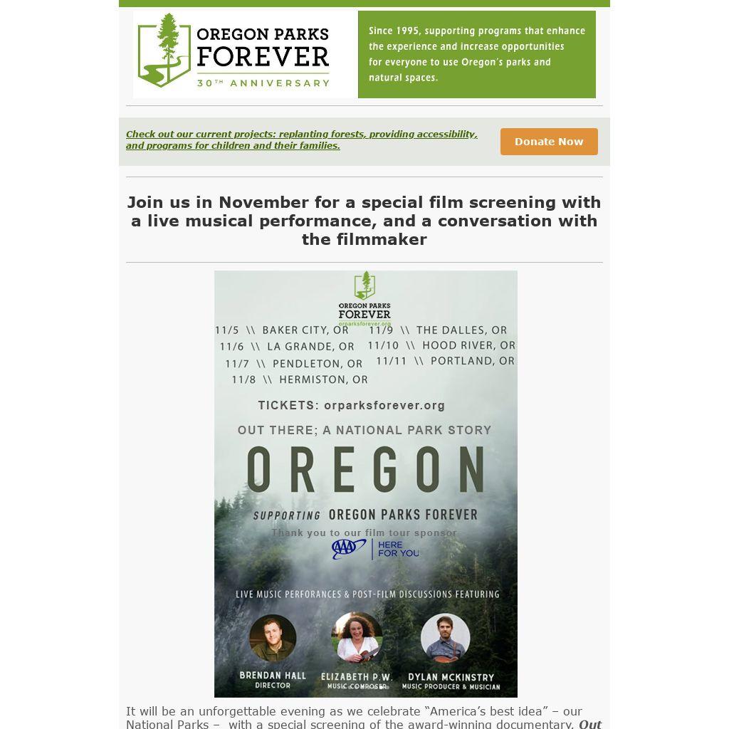 It will be an unforgettable evening as we celebrate “America’s best idea” – our National Parks – with a special screening of the award-winning documentary, Out There: A National Parks Story. A discussion with the filmmaker will follow.