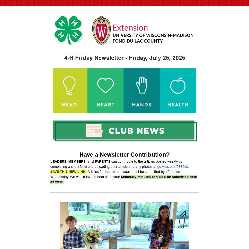 Have a Newsletter Contribution?LEADERS, MEMBERS, and PARENTS can contribute to the articles posted weekly by completing a short form and uploading their article and any photos at go.wisc.edu/2665ok.