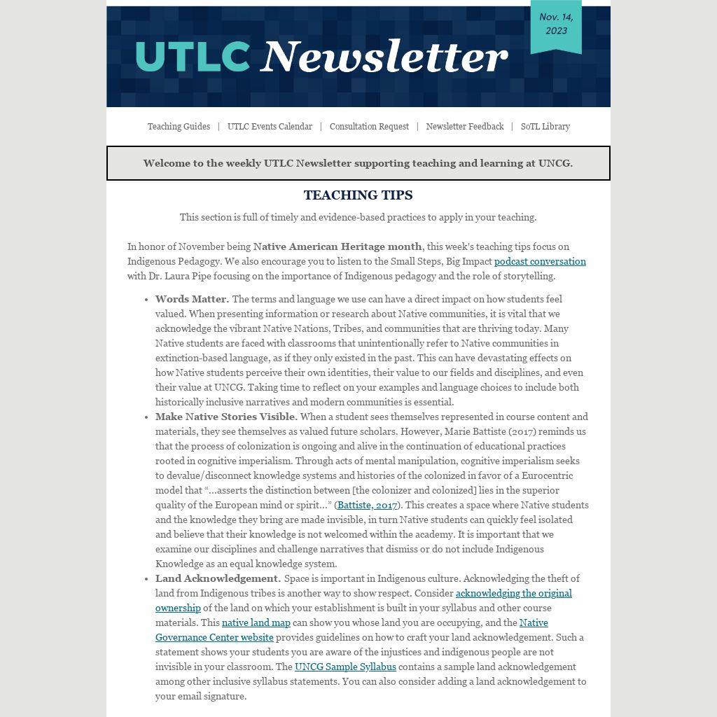 Welcome to the weekly UTLC Newsletter supporting teaching and learning at UNCG.