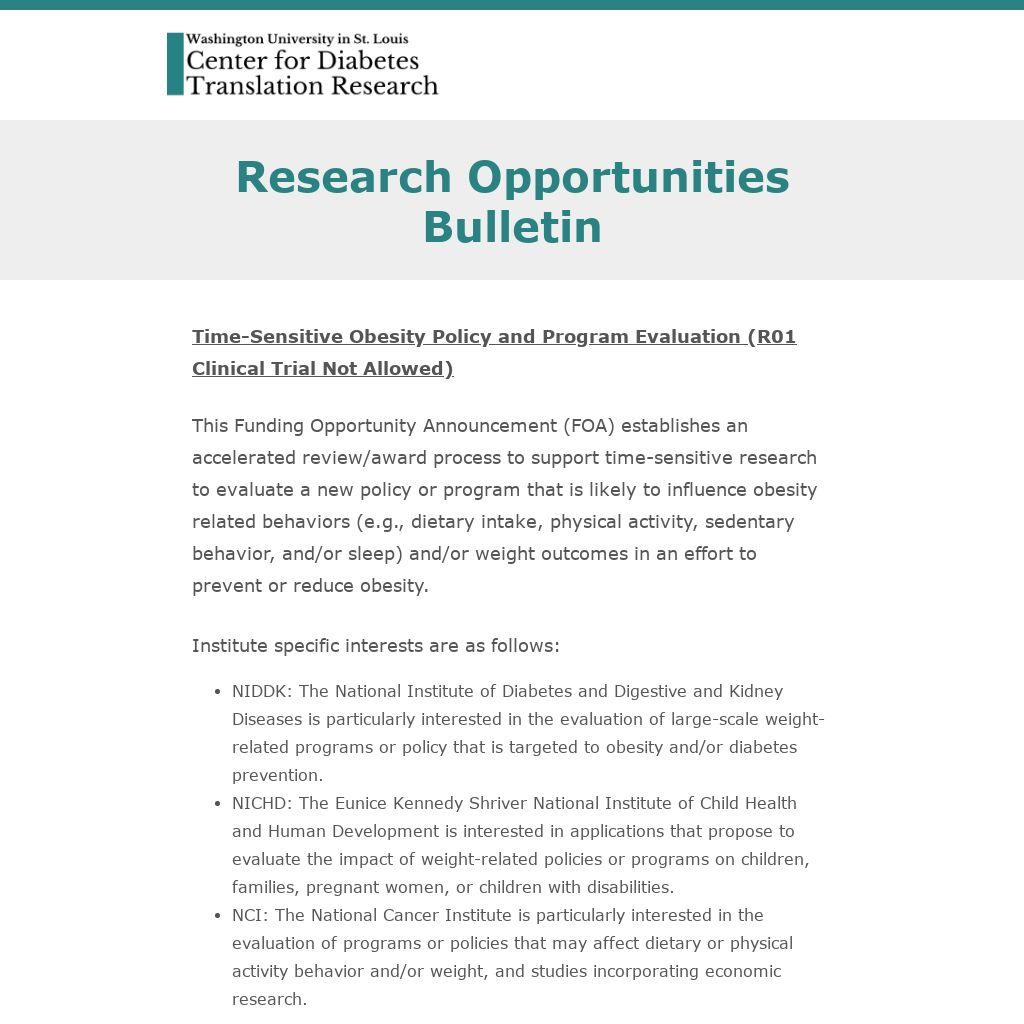 FOA time-sensitive obesity policy; upcoming NIDDK digital health workshop