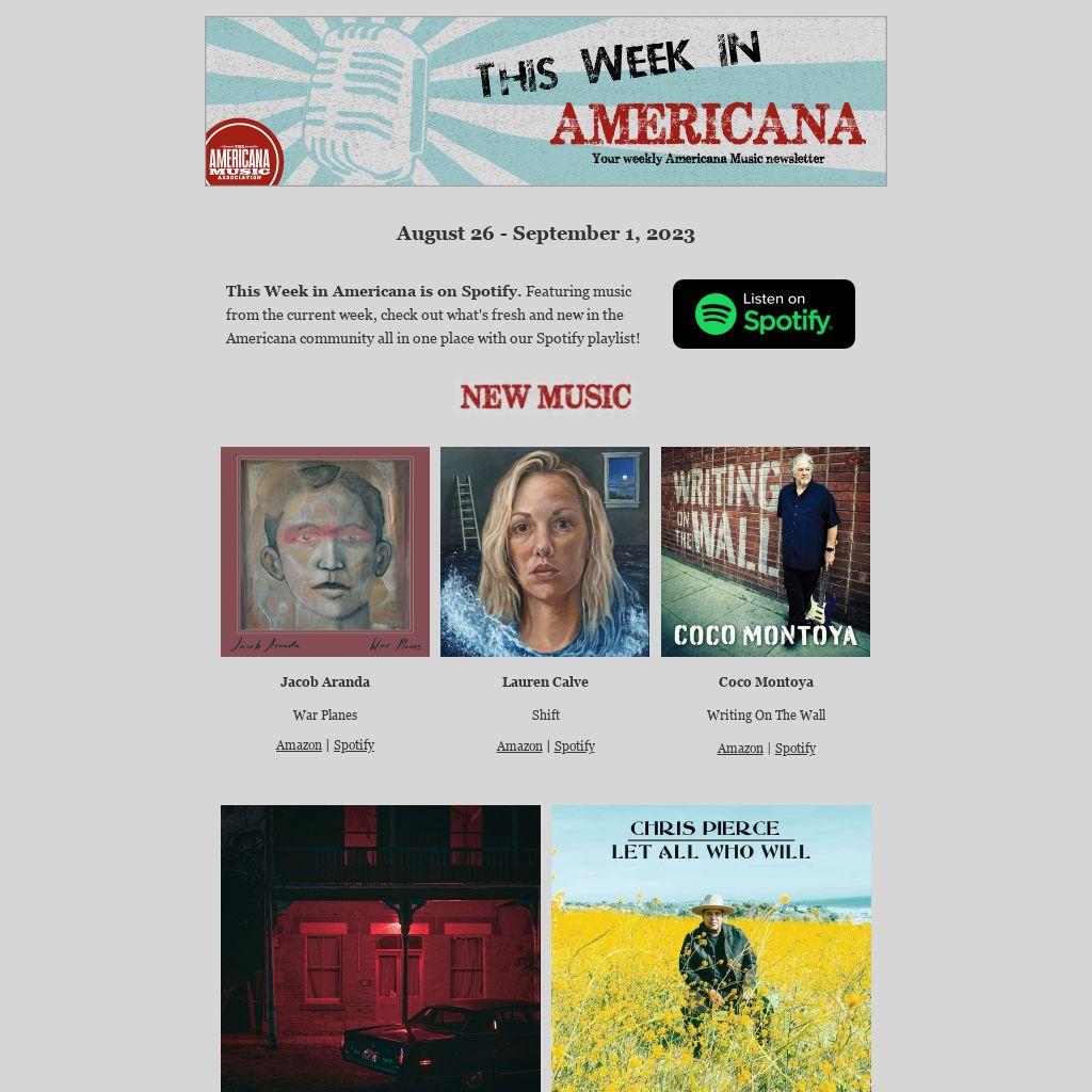 This Week in Americana is on Spotify. Featuring music from the current week, check out what's fresh and new in the Americana community all in one place with our Spotify playlist!