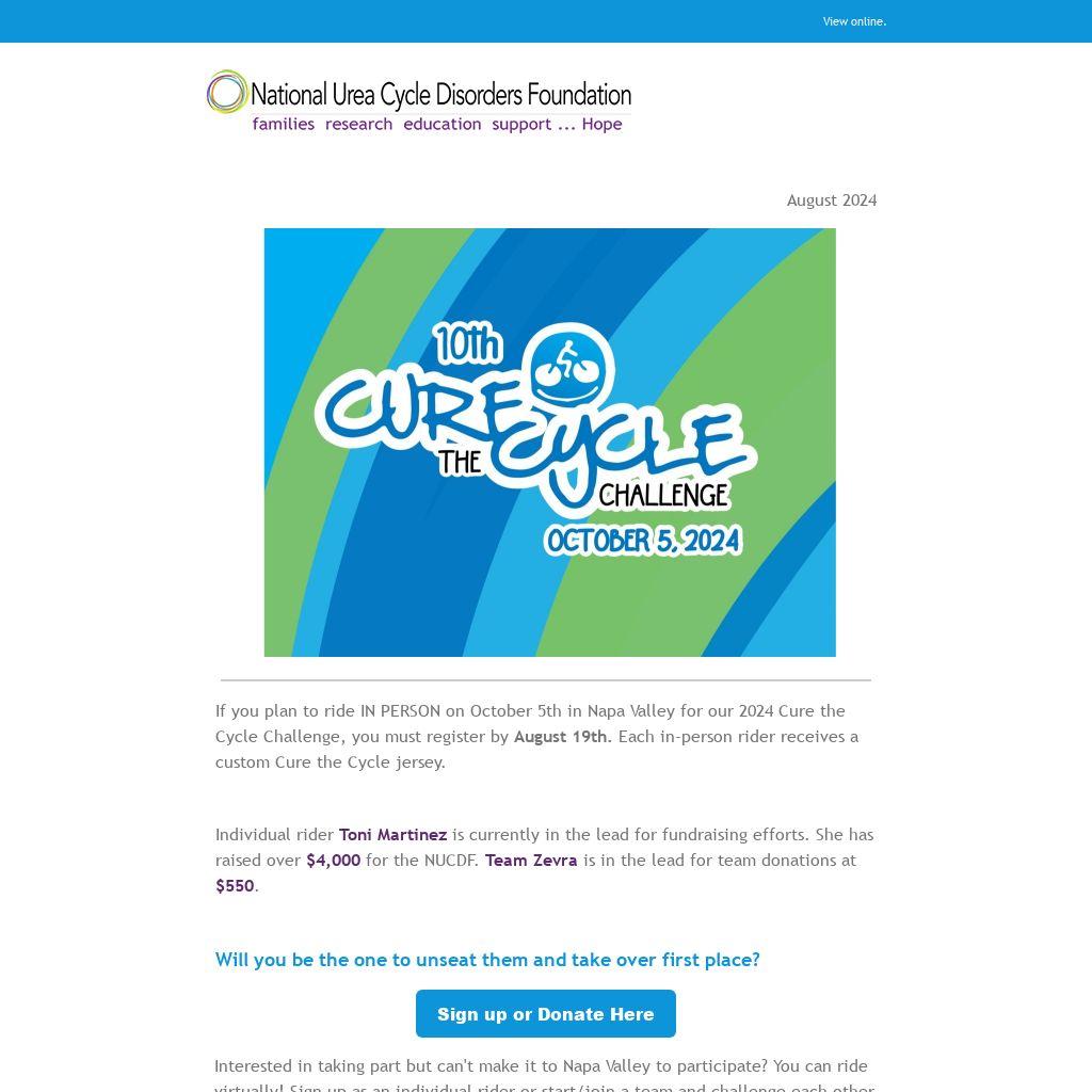 If you plan to ride IN PERSON on October 5th in Napa Valley for our 2024 Cure the Cycle Challenge, you must register by August 19th. Each in-person rider receives a custom Cure the Cycle jersey.