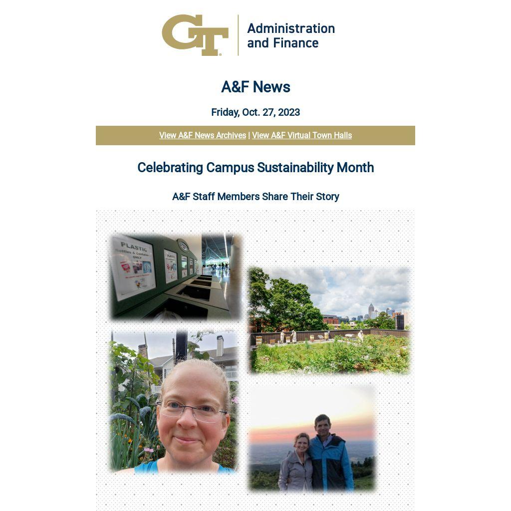 While Campus Sustainability Month may be ending next week, sustainability is celebrated every day by many in the Georgia Tech community. Meet a few staff members in A&F who are sharing their story.