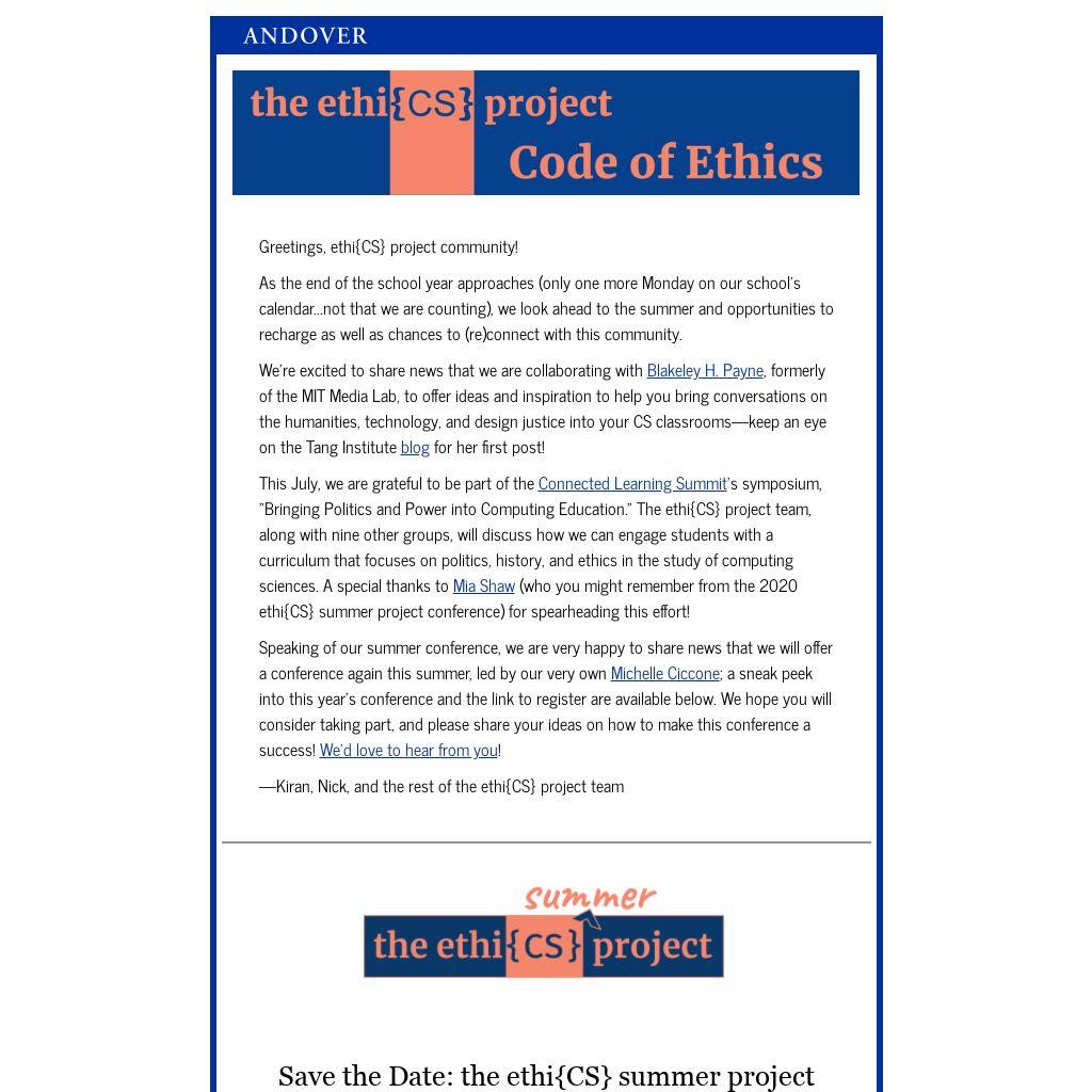 Save the Date: the ethi{CS} summer project returns!We’re excited to announce this year’s ethi{CS} summer project, a conference that brings together educators who are passionate about teaching the next generation of conscientious coders and consumers of technology. This year’s conference will be led by Michelle Ciccone, graduate student at University of Massachusetts Amherst. Here, we share details on the conference and the link to register. Join us!