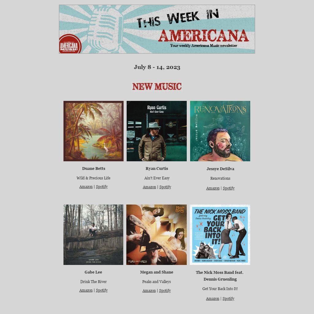 This Week in Americana is on Spotify. Featuring music from the current week, check out what's fresh and new in the Americana community all in one place with our Spotify playlist!