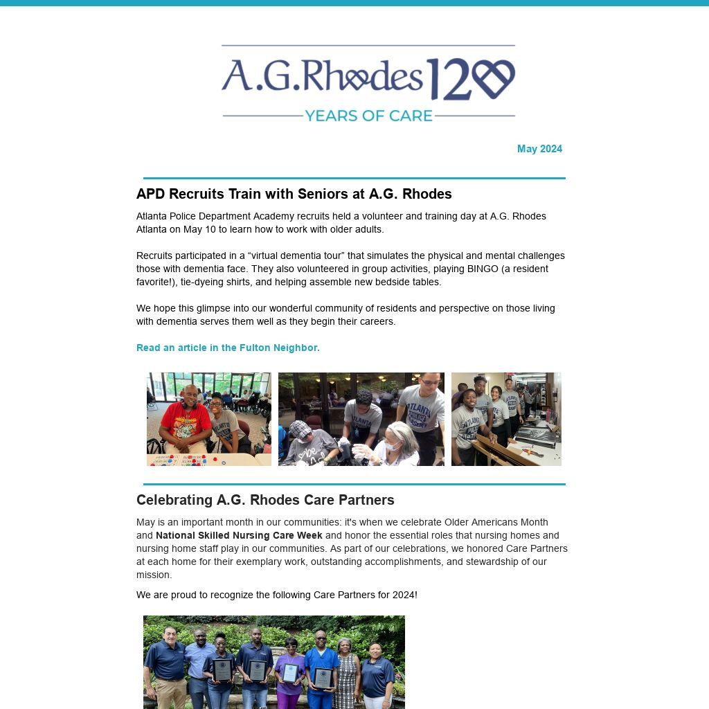 May is an important month in our communities: it's when we celebrate Older Americans Month and National Skilled Nursing Care Week and honor the essential roles that nursing homes and nursing home staff play in our communities. As part of our celebrations, we honored Care Partners at each home for their exemplary work, outstanding accomplishments, and stewardship of our mission.