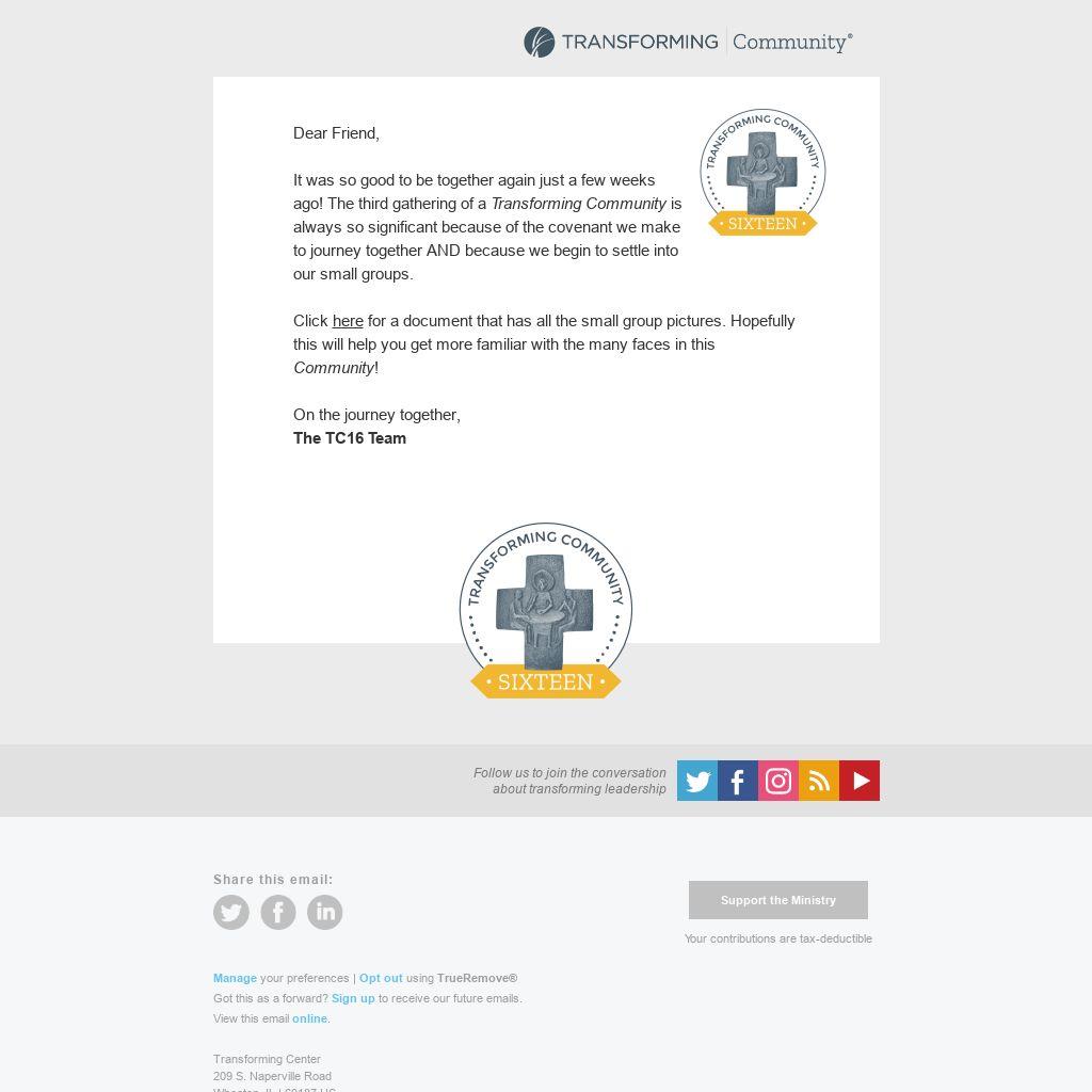 It was so good to be together again just a few weeks ago! The third gathering of a Transforming Community is always so significant because of the covenant we make to journey together AND because we begin to settle into our small groups.