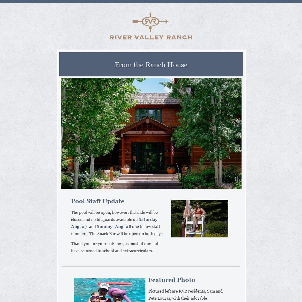 Beginning Monday, Sept. 5 the Ranch House will transition to fall hours. Monday - Friday: 6 a.m. to 8 p.m. Saturday & Sunday: 8 a.m. to 8 p.m.