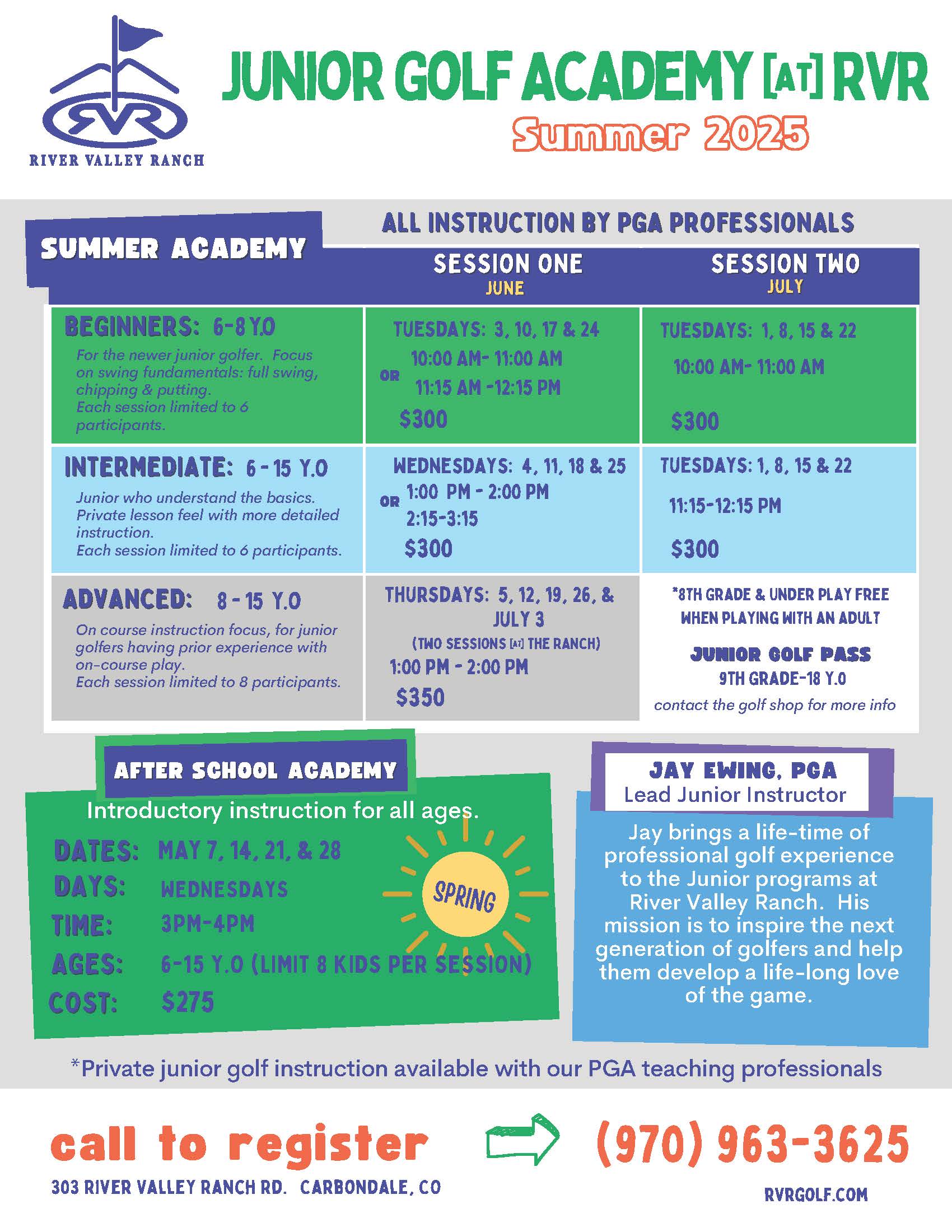RVR Golf Summer Junior Academy. Click here for more info.