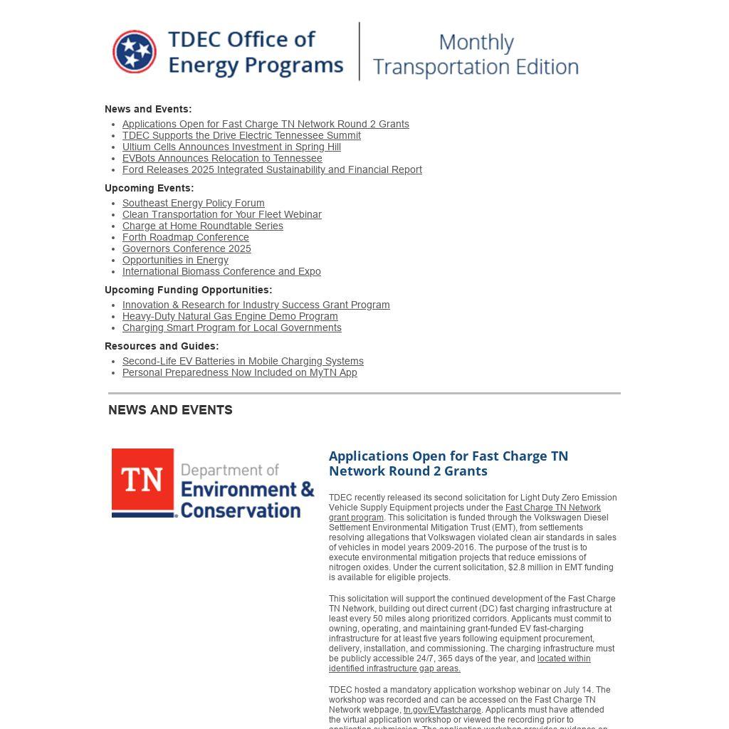 | | Applications Open for Fast Charge TN Network Round 2 Grants |
